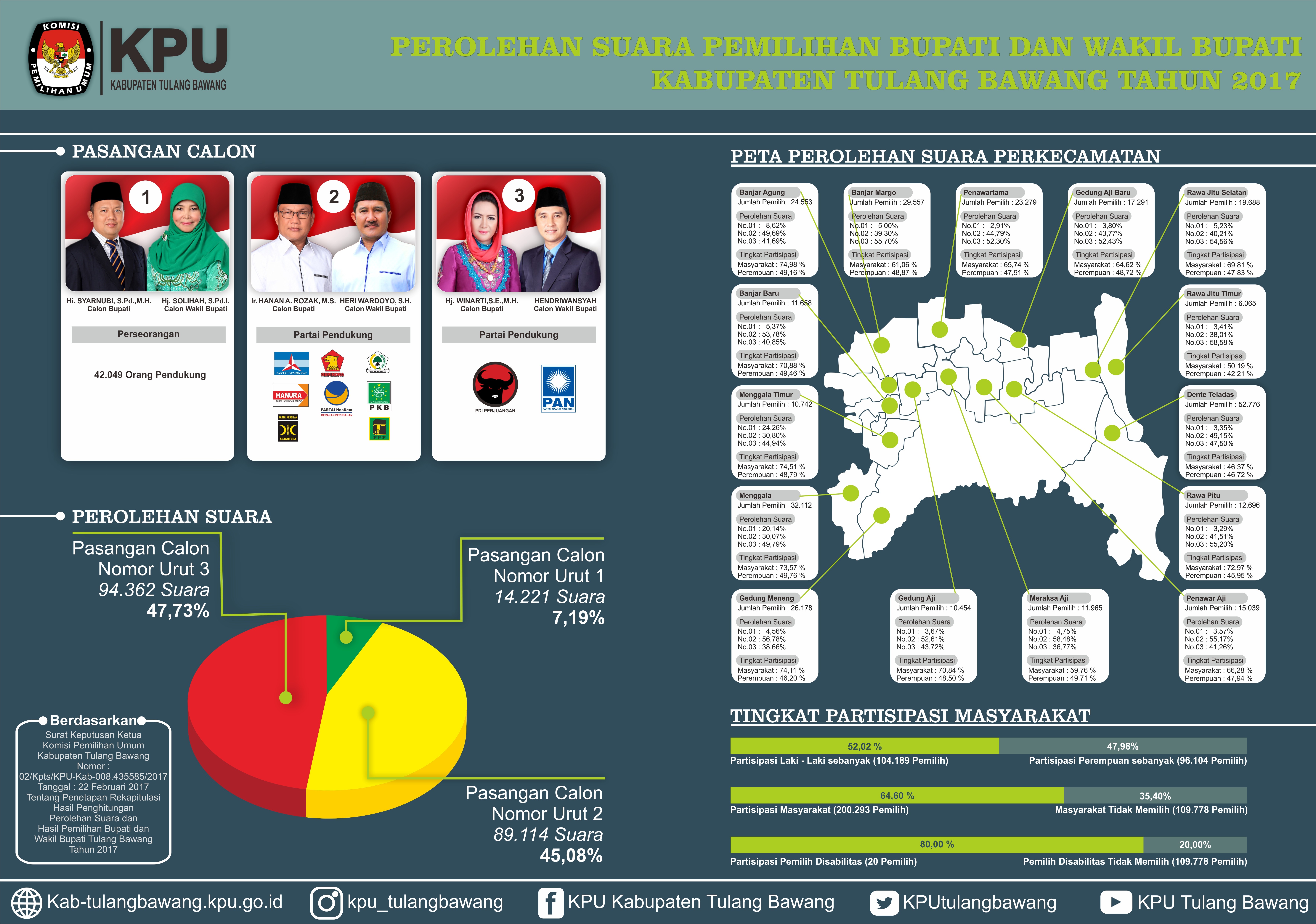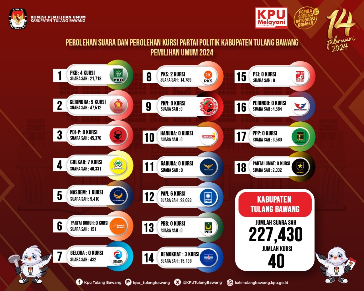 Tulang Bawang — Komisi Pemilihan Umum (KPU) Tulang Bawang melaksanakan kegiatan Peluncuran Hari Pemungutan Suara Pemilu Serentak 2024. Launching dilakukan secara virtual serentak bersama KPU pusat Kegiatan peluncuran tersebut merupakan tindak lanjut Surat Ketua KPU Republik Indonesia Nomor 108/PL.01-SD/01/2022 tanggal 11 Februari 2022 perihal Peluncuran Hari Pemungutan Suara Pemilu Serentak Tahun 2024 Berdasarkan Keputusan KPU RI Nomor 21 Tahun 2022 tentang Hari dan Tanggal Pemungutan Suara serentak Pileg dan Pilpres serentak 2024 pada Rabu, tanggal 14 Februari 2024,” ujar Ketua KPU Tulang Bawang Reka Punata, Selasa (15/2). Reka Punata mengatakan, setelah ditetapkan hari dan tanggal Pemungutan Suara Pemilu Serentak 2024 pada hari Rabu, tanggal 14  Februari 2024 maka sesuai ketentuan Undang-Undang Nomor 7 Tahun 2017 tentang Pemilu: paling lambat 20 bulan sebelum HPS, yaitu 14 Juni 2022 sudah dimulai Tahapan Penyelenggaraan Pemilu Serentak 2024. “Saat ini KPU RI sedang mengajukan Permohonan Konsultasi Rancangan PKPU tentang Tahapan, Program dan Jadwal Penyelenggaraan Pemilihan Umum Tahun 2024 kepada DPR, Adapun Kitatelah menyaksikan bersama dan mendengar sambutan Ketua KPU RI,Ilham Saputra menekankan peluncuran ini menjadi momentum bersejarah bagi bangsa Indonesia dan sosialisasi kepada masyarakat sehingga memahami dan ikut berpartisipasi dalam setiap tahapan” kata dia. Ia menambahkan, peluncuran Hari dan Tanggal Pemungutan Suara Pemilu Serentak 2024 ini ditandai dengan media pencoblosan surat suara oleh Ketua dan Anggota KPU RI. Acara peluncuran ini juga dihadiri Seluruh Anggota Komisoner,Sekretaris,Staf KPU Tulang Bawang,  Forkopinda,Banwaslu Parpol peserta Pemilu,se Tulang Bawang dan di lanjukan dengan Photo bersama,serta Pemasangan Sepanduk secara simbolis oleh Ketua KPU Tulanga Bawan.