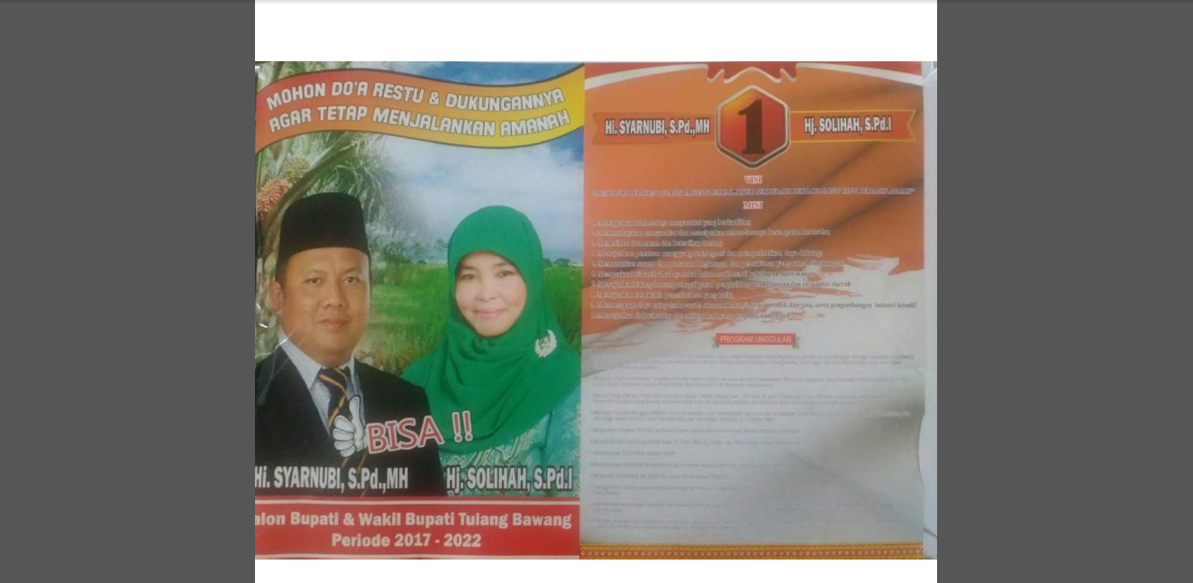 Pasangan calon Bupati dan Wakil Bupati Tulang Bawang periode 2017 – 2022 No urut (1) Satu Hi. Syarnubi, S.Pd,MH dan Hj. Solihah S.Pdi
