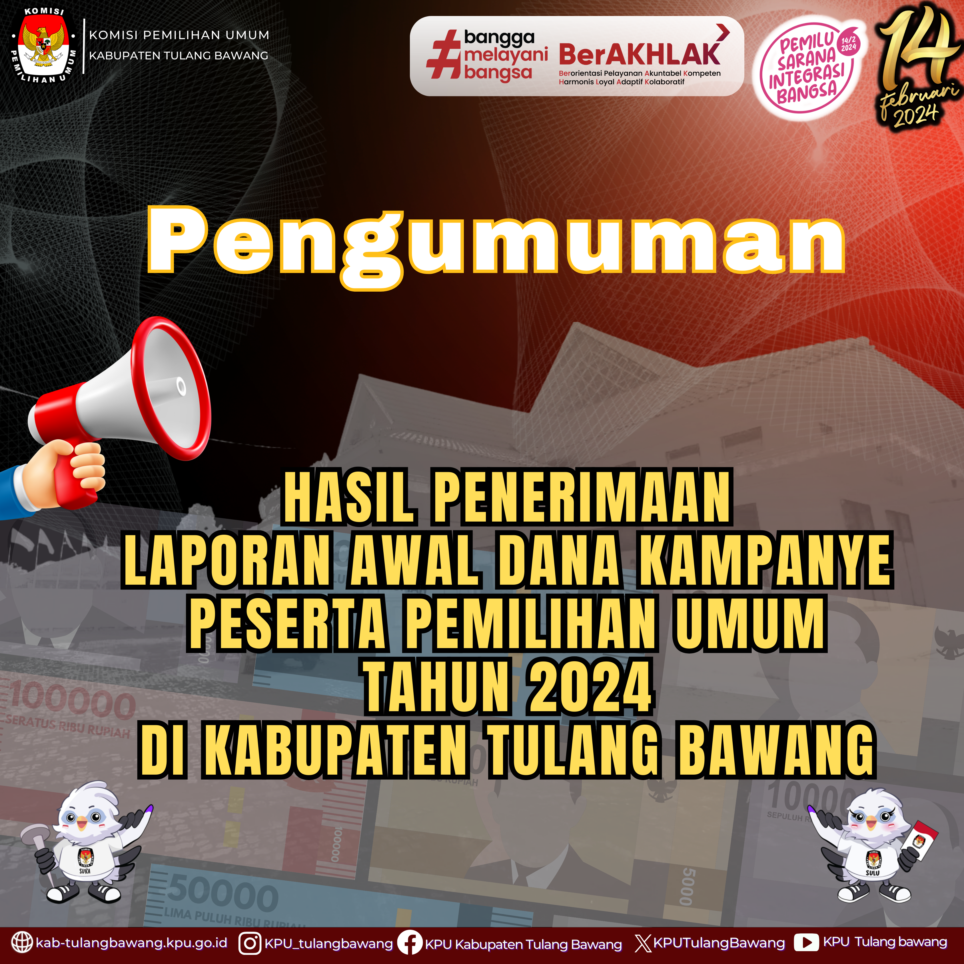 Dalam rangka pembentukan Calon Anggota Panitia Pemilihan Kecamatan untuk Pemilihan Gubernur dan Wakil Gubernur, Bupati dan Wakil Bupati, dan Wali Kota dan Wakil Wali Kota Tahun 2024, Komisi Pemilihan Umum Kabupaten Tulang Bawang, mengundang Warga Negara Indonesia yang memenuhi kualifikasi untuk mendaftarkan diri menjadi Panitia Pemilihan Kecamatan untuk Pemilihan Gubernur dan Wakil Gubernur, Bupati dan Wakil Bupati, dan Wali Kota dan Wakil Wali Kota dengan ketentuan sebagai berikut: